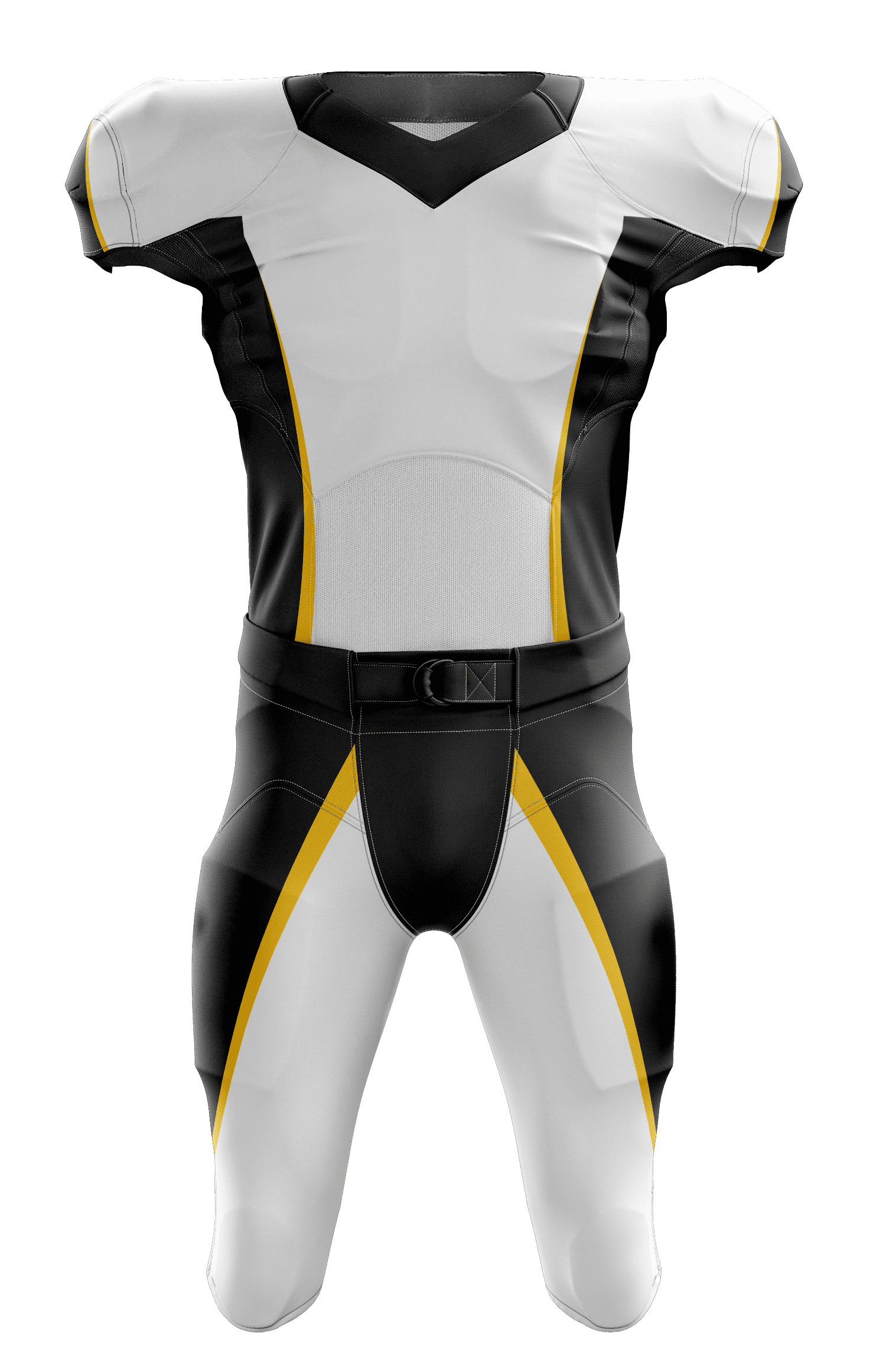 Pants for American football provide maximum durability, professional appearance and especially comfort for male and female players. Pants are manufactured in a special pattern that provides a feeling of complete freedom. They are manufactured from 100% polyester, which is a lightweight, elastic, air permeable and has an extraordinary strength. All seams are double quilted by a special stitch using two-core threads. A broad elastic band is used at the waist, which in combination with the belt, allows perfect fixation on the body. The front part is without the lacing. The end of the pants is secured with elastic band under the knee. The pants have standard internal pockets for knee and thigh pads. We supply pants without pads due to individual requirements on pads.